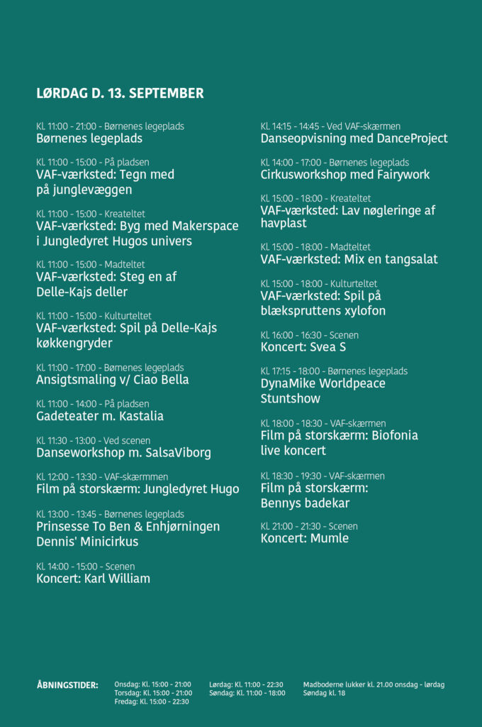 Glæd jer til en festival fyldt med oplevelser for alle aldre. Nyd livemusik, spændende workshops, imponerende shows og meget mere. For de yngste festivalgæster har vi skabt et legende univers med fokus på sansning, nærvær og fællesskab – et sted, hvor både børn og voksne kan være med.